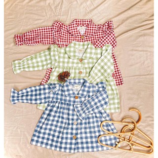 Blouse Motif Kotak Kancing Pita Anak Perempuan