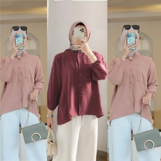 Kemeja Tunik Polos Blouse Wanita MUSLIM BAHAN CRINKLE AIRFLOW PREMIUM IMPORT