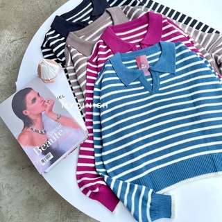 Yeyi Crop Blouse - Sweater Stripee wanita