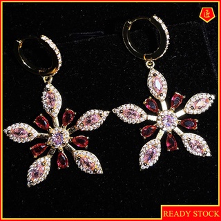 [Ready Stock]Pink Crystal Flower Long Earrings Colored Gems
