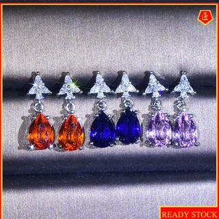 [Ready Stock]Inlaid Pink Crystal Colored Gems Ear Studs