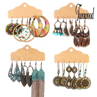 3 Pasang / Set Anting Kait Juntai Rumbai Geometris Turquoise Tiruan Untuk Wanita