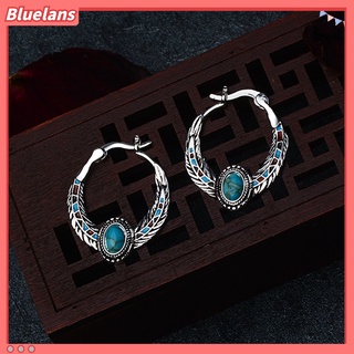 [WOD] Vintage Wanita Faux Turquoise Hias Bulu Menjuntai Hoop Earrings Perhiasan Hadiah