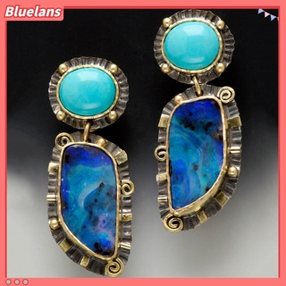 Anting Stud Geometris Menjuntai Aksen Turquoise Tiruan Gaya Vintage Untuk Perhiasan Wanita