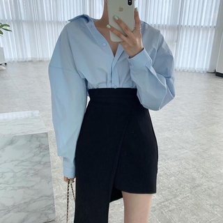 blus korea kemeja lengan engah putih kemeja perancis wanita lengan pendek cropped chic top
