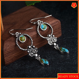 [Ready Stock]Creative Retro Silver Inlaid Turquoise Earrings
