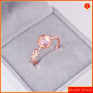 [Ready Stock]Creative Knotted Pink Crystal Moonstone Ring Female 18K Rose Gold
