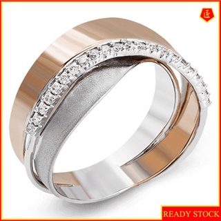 [Ready Stock]Creative Cross Winding 14K Gold Two-Tone Diamond-Studded Ring