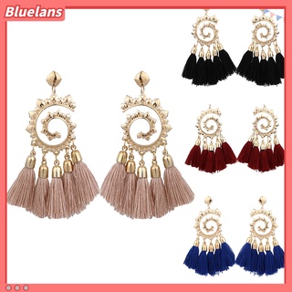 Anting Juntai Bentuk Spiral Aksen Rumbai Gaya Bohemian Untuk Wanita