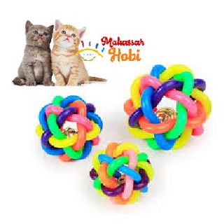 Mainan bola karet warna warni "S" kucing ada lonceng