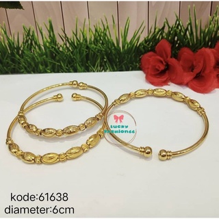 Gelang Tangan Bulat TITANIUM Lapis Emas Gelang Bangel Dewasa Motif bola lonjong 61638 (1pcs)