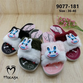 Sandal Slop Wanita Bulu Halus Boneka Rabbit Lucu Imut Import Mokaya / size 36-40 (9077-181)