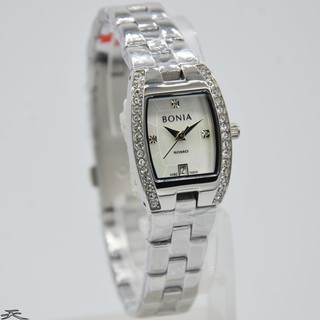 JAM TANGAN WANITA BONIA DIAMOND 001-PW RANTAI STAINLESS STEEL TANGGAL AKTIF FREE BOX & BATERAI CADANGAN