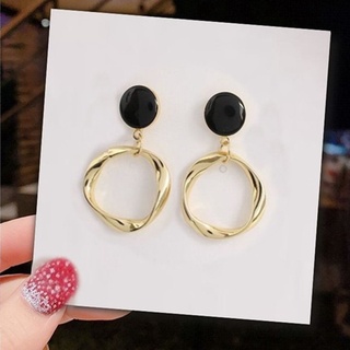 Anting Klip on Lapis Emas Bentuk Bulat Asimetris Gaya Punk Rock Untuk Wanita