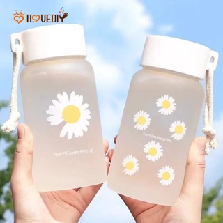 1 Pc Botol Minum Bahan Plastik Motif Bunga Aster Anti Bocor Dengan Tali Portabel Untuk Travel