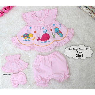 Set Bayi Sea 172 2in1/Setelan Baju Bayi 0-6 bln Dress+Celana/Set Pakaian Bayi Murah Lucu Karakter