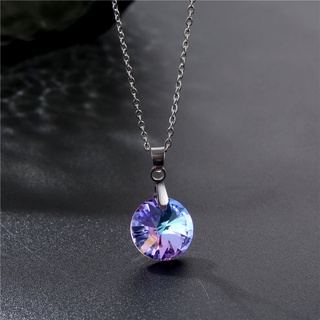 Sederhana fashion Kristal bulat kalung stainless steel kalung Eropa dan Amerika Ungu kristal kalung