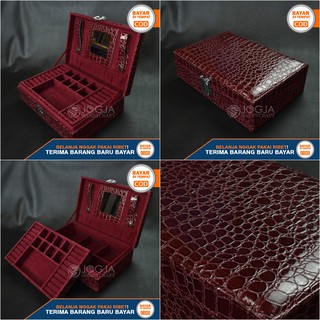 Exclusive Maroon Croco Jewelry Box Organizer / Tempat Perhiasan Lengkap Anting, Gelang, Kalung, Emas