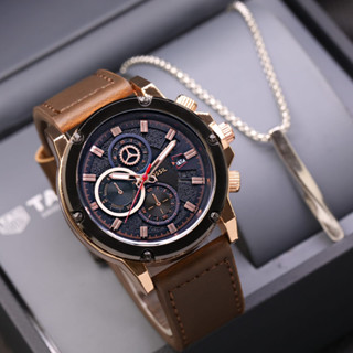 Grosiran Jam Tangan Pria Tali Kulit TS-7565 Free Box, Baterai dan Kalung