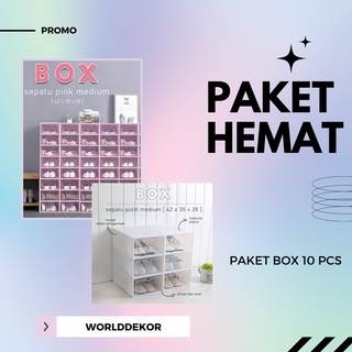 Paket Hemat Box Sepatu 10 Pcs Warna Random Storage box Tebal Serbaguna WD