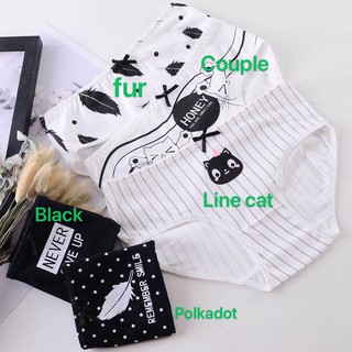 Celana Dalam Wanita Brief Mid Waist Motif Print Kartun Lucu Bahan Katun Breathable Nyaman C180
