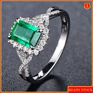 [Ready Stock]Inlaid Square Emerald Diamond Ring Fashionable Elegant