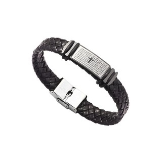 LRC Gelang Fashion Titanium Steel Leather Scripture Cross Bracelet Black D33284