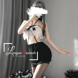 Set Lingerie Sexy + G String Transparan Model Gaun Lace LG046