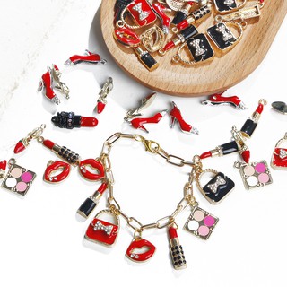 2-4 Pcs Enamel Makeup Charms Mixed Women Lip Lipstick Alloy Gold Tone Necklace Bracelet Jewelry Making Accessory
