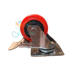 Roda Trolley Troli Troly PU Merah 3" Inch Rem Swivel Brake Stainless Osaka