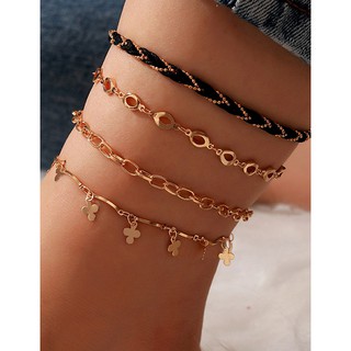 LRC Gelang Kaki Fashion Golden Thick Chain Flower Cord Braided Multilayer Anklet P06602