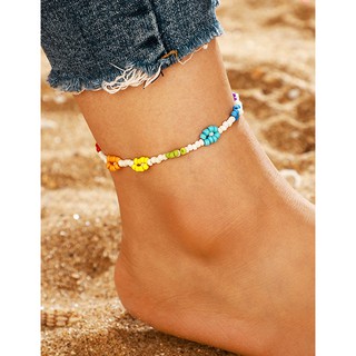 LRC Gelang Kaki Fashion Color Rice Beads Flower Anklet D20890