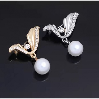 [ 1Pc Gold Silver Elegant Bowknot Pearl Brooches Brooch Pin Collar Jewelry for Girls ]
