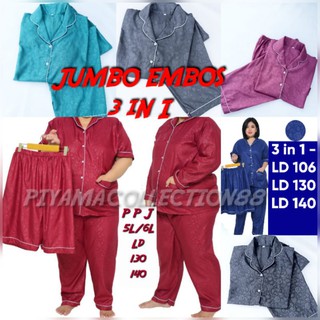 Baju Tidur Jumbo Embos 3 in 1 / piama setelan pasangan baju dan celana