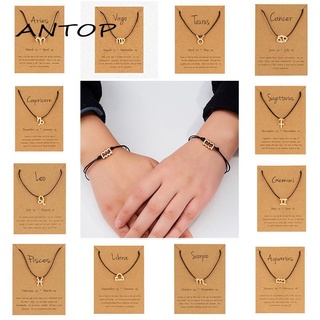 Gelang Tangan Tali Hitam Adjustable Aksen Lambang Zodiak Untuk Wanita