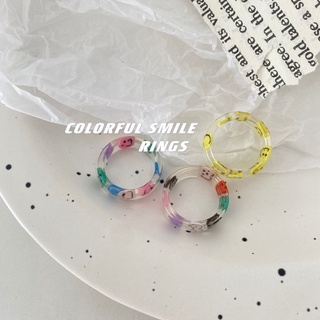 Cincin Desain Smiley Face Bahan Resin Gaya Korea Harajuku