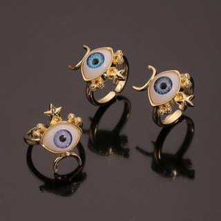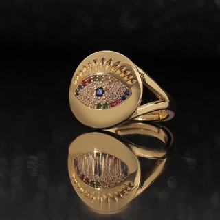 Produk baru ornamen tembaga berlapis emas warna bertatahkan zircon Iblis Mata cincin retro kepribadi