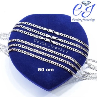 Kalung Perak Pria Wanita Silver Asli 925 Lapis Emas Putih Rantai Sisik Naga Ukir 50 Cm - Perhiasan