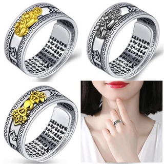 Cincin Model Terbuka Desain Naga Pixiu Warna Silver Gaya retro Kreatif Adjustable Untuk Priawanita