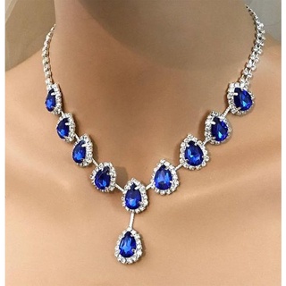 Kalung Bahan Stainless Steel Aksen Zircon Warna Biru Untuk Wanita