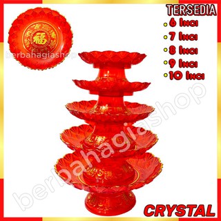 Piring Buah Persembahan Sembahyang Puja Altar Merah Kristal Impor Taiwan High Quality