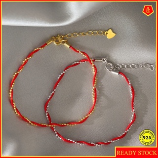 Gelang Tali Kepang Tipis Dengan Bola Ombak Warna Merah Untuk Wanita
