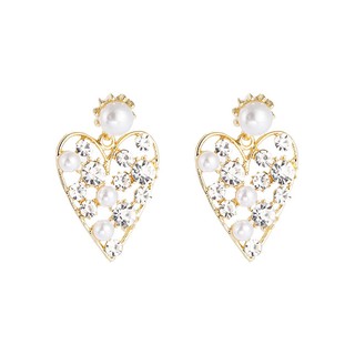 LRC Anting Tusuk Fashion Contrasting Oil Drop Heart Stud Earrings With Pearls A60561