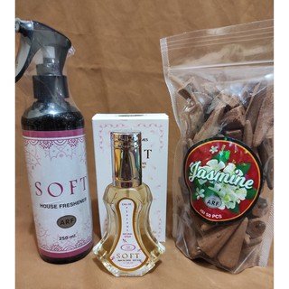 kombinasi cantik 3 parfum pengharum ruangan arab 250ml SOFT dan buhur kerucut dan minyak spray 35ml