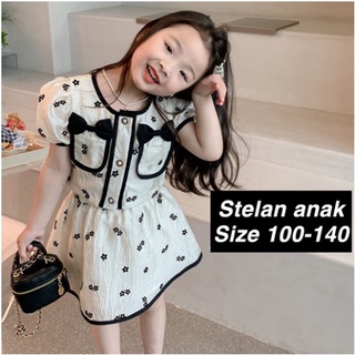 SETELAN ANAK CEWEK PITA POCKED BUNGA + ROK SIZE 100-140 MIKIE