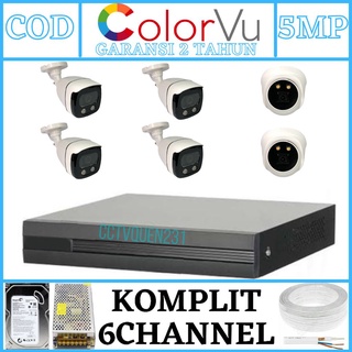 PAKET CCTV COLORVU 8 CHANNEL 6 KAMERA FULL COLOR 5MP 1080P IR SONY TURBO HD KOMPLIT