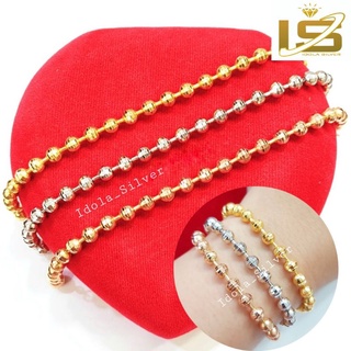 GELANG PERAK ASLI SILVER 925 LAPIS EMAS MODEL BOLA UKIR KOMBINASI - PERHIASAN PERAK WANITA