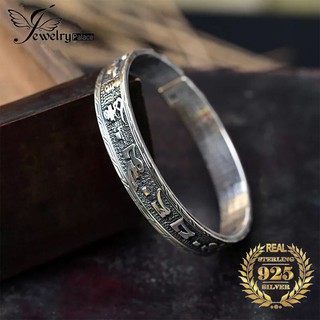 925 gelang perak murni untuk pria enam karakter mantra perhiasan gelang perak Thailand retro