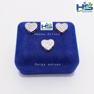 Liontin Perak Silver Asli 925 Lapis Emas Putih Model Love Permata Putih - Liontin Perak Anti Karat
