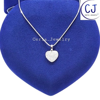 Kalung Perak Asli 925 Silver Lapis Emas Putih Rantai Italisanta Liontin Love Gepeng Permata full - Perhiasan Perak Asli